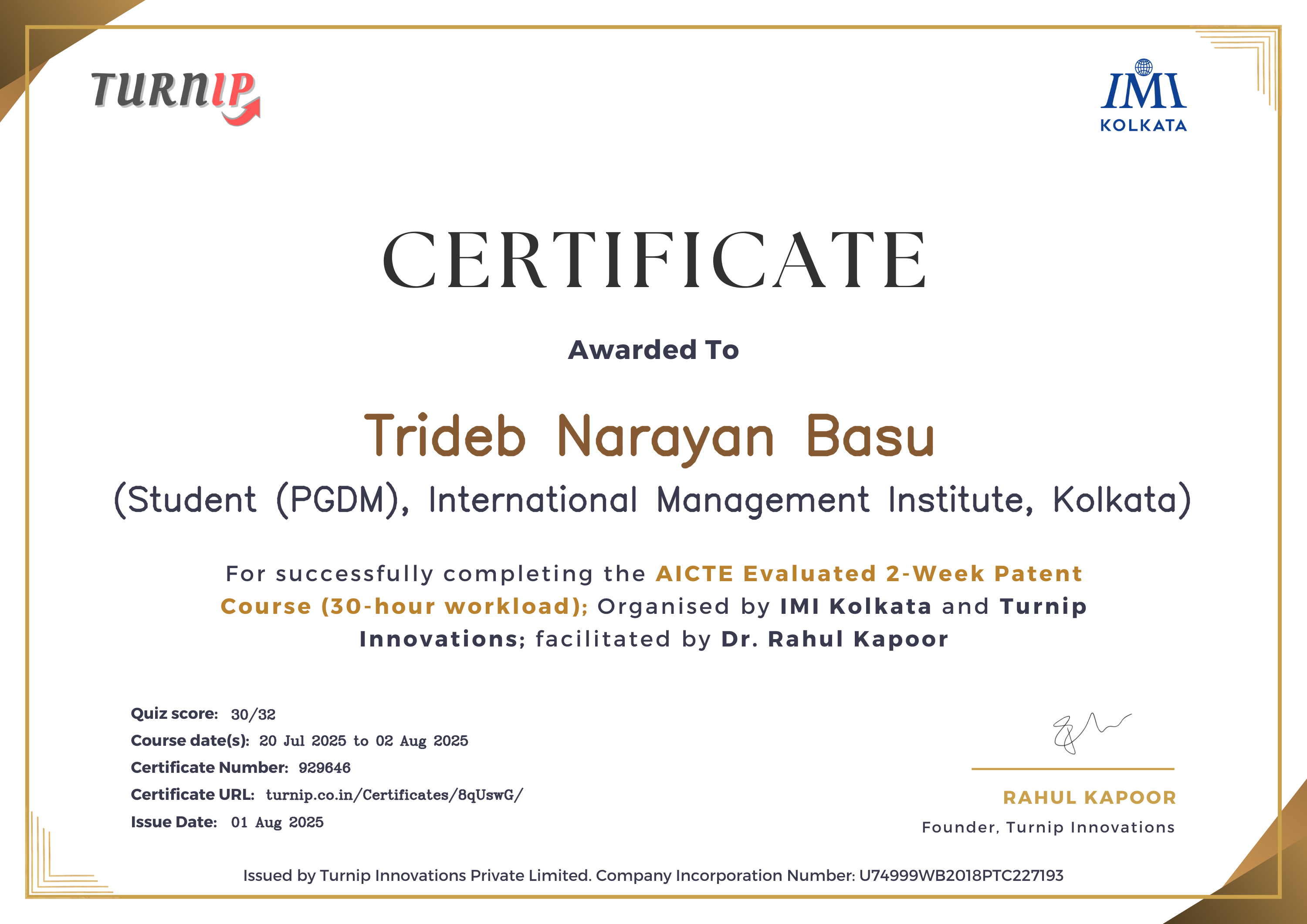 Certificate Receipient: